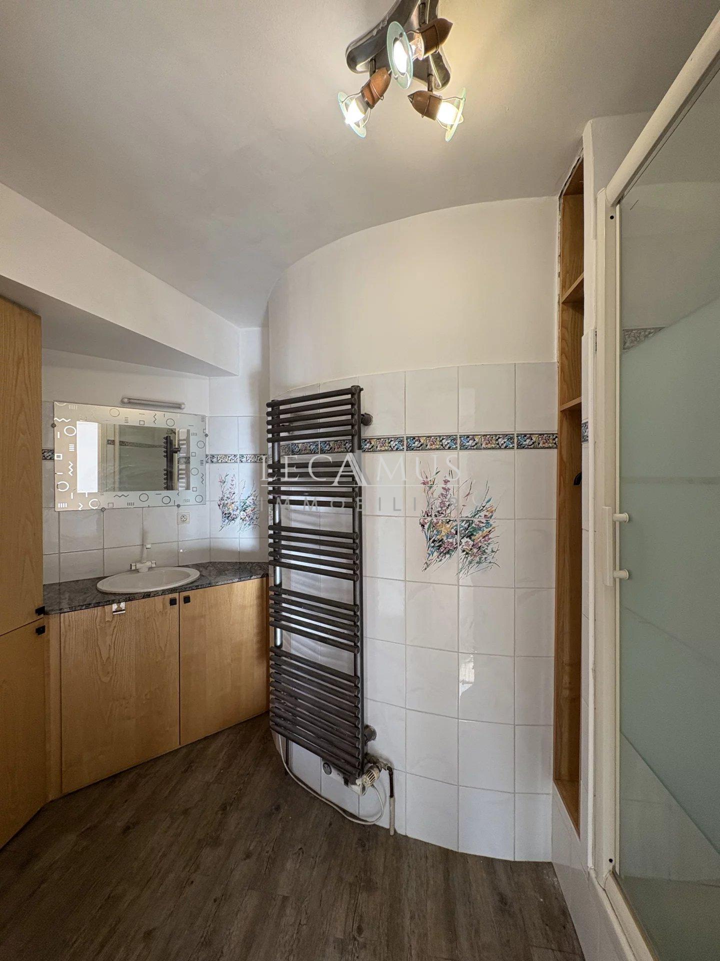 – Au rez de chausée : l’entrée avec placard, une chambre de 20 m2 avec sa salle d’eau privative, les toilettes et un garage.