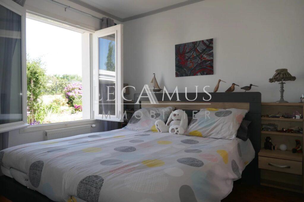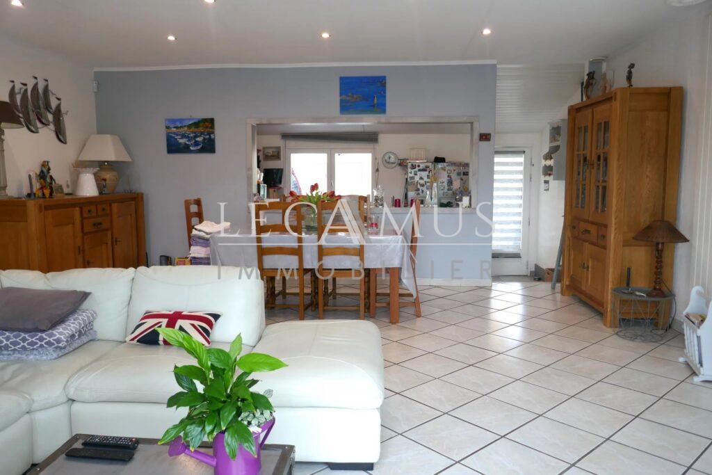 L’agence immobilière LE CAMUS IMMOBilier vous propose de visiter sans tarder cette maison de plain-pied à acheter, située à 2h15 de PARIS par la ligne LGV et à quelques minutes des plages, de port et de toutes les commodités.